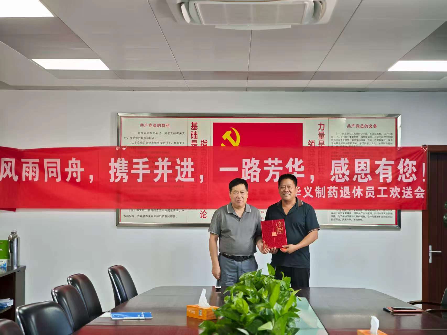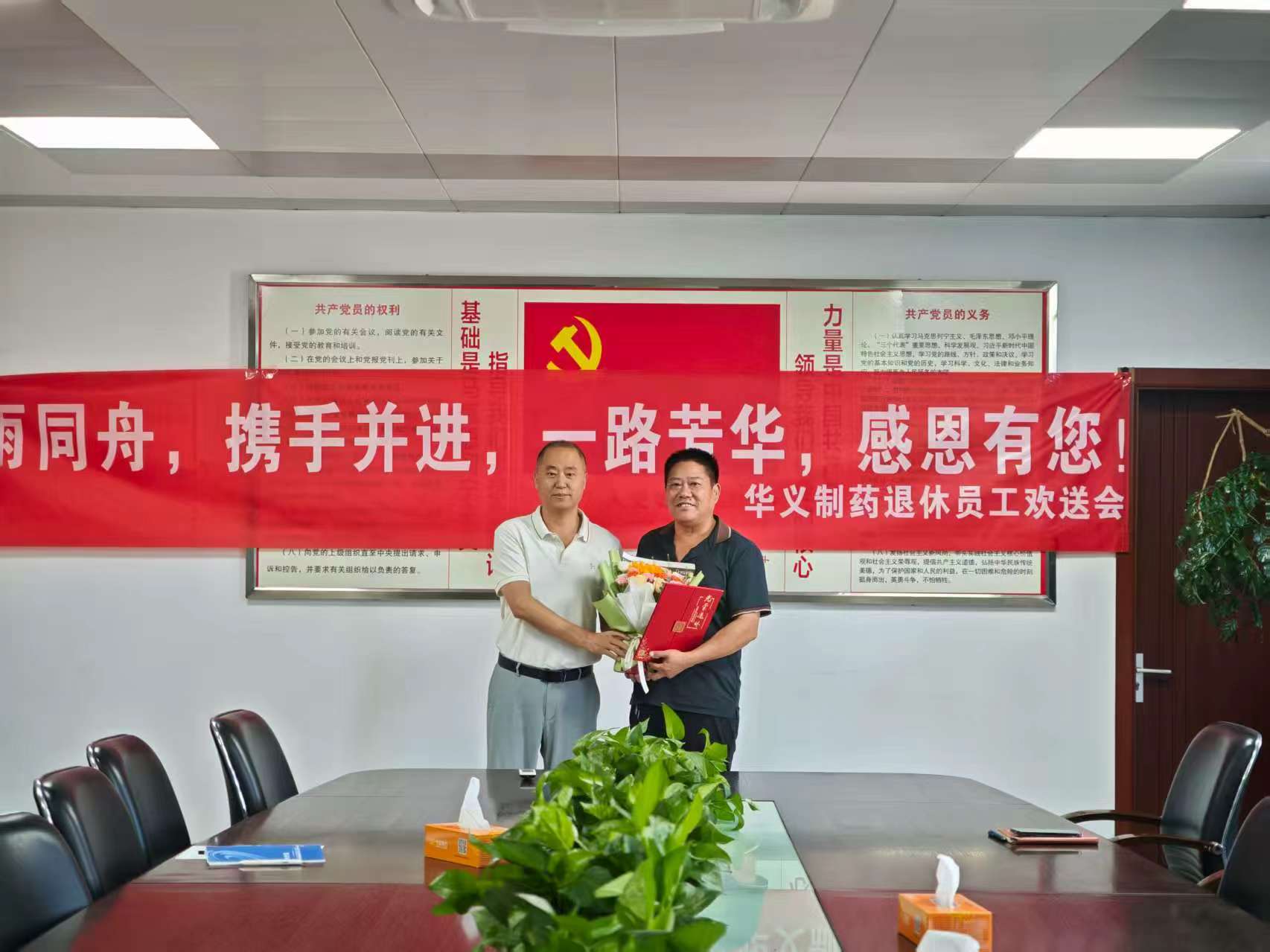 在2025年9月22日下午,華義制藥迎來(lái)今年第四次退休員工歡送會(huì),退休員工是合成車(chē)間的楊可榮同志。楊可榮同志于2000年11月進(jìn)入華義工作,至今已近25年,期間一直在車(chē)間工作,是車(chē)間較早一批員工之一,并在2024年度榮獲“先進(jìn)員工”光榮稱(chēng)號(hào)。