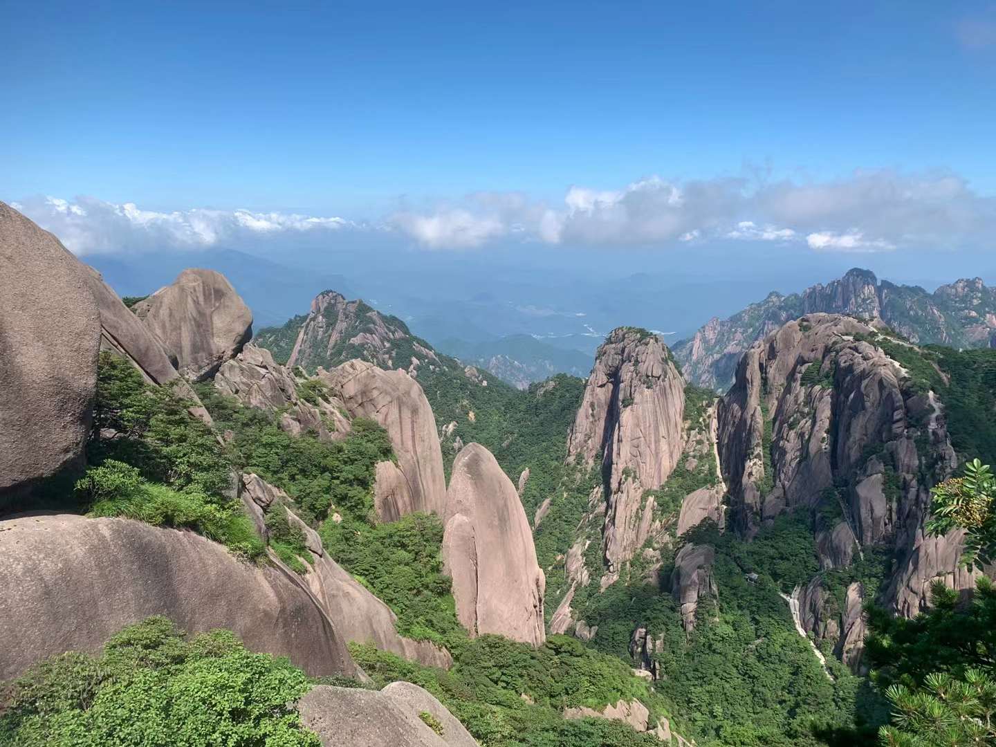 黃山是世界文化與自然遺產(chǎn)、世界地質(zhì)公園、世界生物圈保護(hù)區(qū),是國家級(jí)風(fēng)景名勝區(qū)、全國文明風(fēng)景旅游區(qū)、國家5A級(jí)旅游景區(qū),與長江、長城、黃河同為中華壯麗山河和燦爛文化的杰出代表,被世人譽(yù)為“人間仙境”、“天下第一奇山”,素以奇松、怪石、云海、溫泉、冬雪“五絕”著稱于世。境內(nèi)群峰競秀,怪石林立,有千米以上高峰88座,“蓮花”、“光明頂”、“天都”三大主峰,海拔均逾1800米。明代大旅行家徐霞客曾兩次登臨黃山,贊嘆道:“薄海內(nèi)外無如徽之黃山,登黃山天下無山,觀止矣!”后人據(jù)此概括為“五岳歸來不看山,黃山歸來不看岳”。